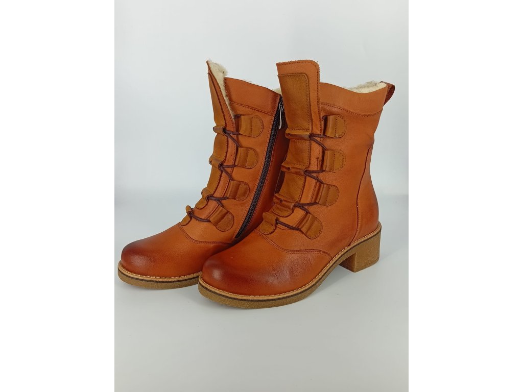 Dámské zimní kožené boty s kožíškem